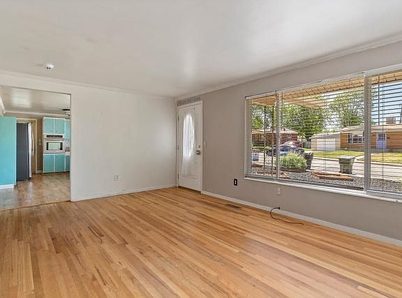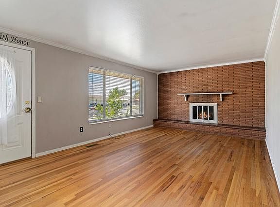 Charming rambler features gorgeous hardwood flooring throughout, fireplaces on each level, updated kitchen with countertop range, wall oven, and built-in shelving, newer laminate flooring in the kitchen/dining area, under stair storage, and the basement is just waiting for your finishing touches. New sewer line to the street, Leaf guards installed on the gutters making clean up super easy, low power bills with the solar panels that are completely paid off and the low maintenance and water wise front yard landscape! Basement bedroom has a room off of it that was used as the closet, but could potentially be used as a nursery, office, gaming room, etc. Sq. footage per tax data records; Buyer to verify all information.