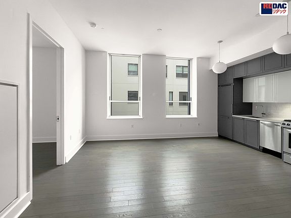 The apartment features modern details stained white oak flooring throughout, an expansive windows, Town steel hardware, LG stacked washer & dryer, and smart home technology and individual climate control systems. All kitchens feature custom lacquer cabinetry, Caesarstone countertops, stainless steel Kohler sink, Blomberg/KitchenAid refrigerator, KitchenAid stove, Whirlpool microwave, and Grohe single lever faucet.