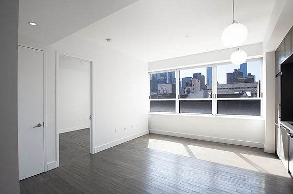 The building features 24-Hour concierge services, gym, co-working space, play room, yoga studio, roof-desk access with BBQ grills and sun-deck, resident lounge with couches & flat screen TV, and a landscaped courtyard with koi fish pond. The building is conveniently located in the heart of Hell's Kitchen surrounded by bars and restaurants,