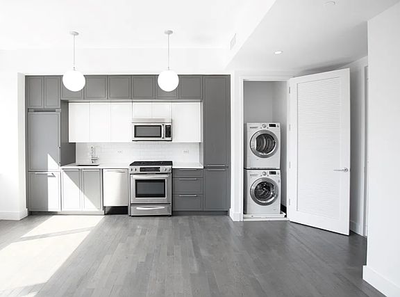 South facing, sunny and modern 1 Bed 1 Bath home in a Full-Service Condominium. Apartment features state-of-the-art kitchen, 9' high-ceilings, oversized windows, deep soaking tub, and in-unit Washer/Dryer.