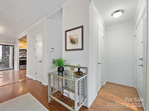 Newly staged and shows beautifully! This charming 2-story floorplan in Historic 4th Ward features a seasonal, city view from the Primary Suite and upstairs balcony. The condo overlooks a serene park-like setting and is just a short distance to 4th Ward Park. Freshly painted with hardwood down, tile baths, vinyl wood tone flooring upstairs plus granite counters, stainless appliances and maple cabinetry. An abundance of natural light flows through multiple sliding doors leading to two enclosed patios and a charming upstairs balcony off of the Primary suite. Walk-in closet space and an outdoor storage closet. Off-street parking includes one assigned spot in lot. Be sure to check it out! Well maintained with new HVAC in 2023 and Water heater replaced in 2019.