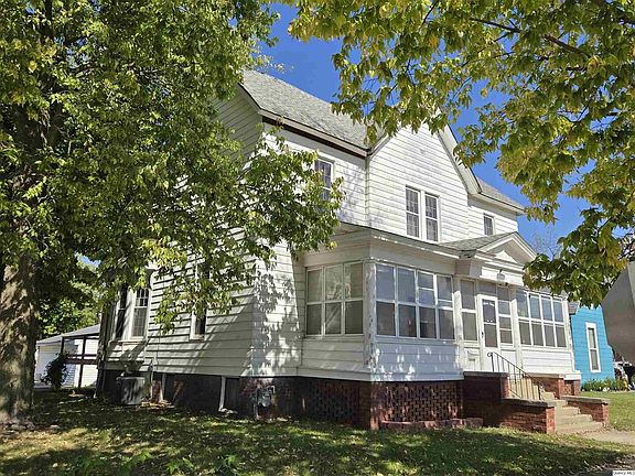 Nice 3 bed, 1 1/2 bath on corner lot with 24x24 detached garage! Nice hardwood floors, replacement windows, new reverse osmosis water system and garbage disposal in the kitchen and new water heater. Beautiful woodwork, 11 ft. ceilings and very spacious! Large covered front porch for enjoying a morning coffee and a 22x15 deck on the back for entertaining! This home could be used for 3 apartments, 1 on each level with a little work, as all 3 floors have washer/dryer hook ups and separate entrances. Full basement with 2 finished rooms, no egress windows. Roof is less than 10 yrs old. Selling "as-is", inspections welcomed. Other schools are Beardstown School District.