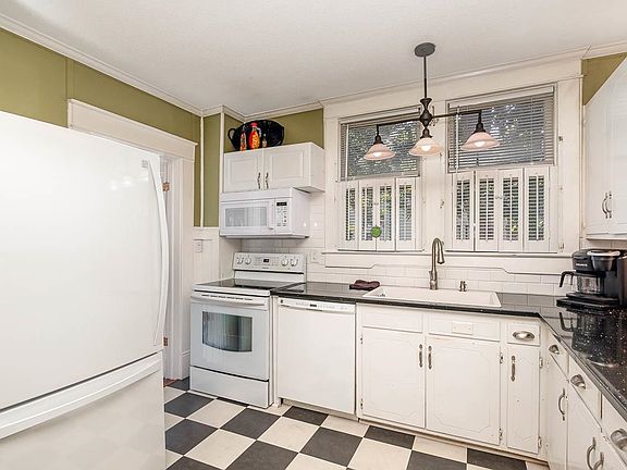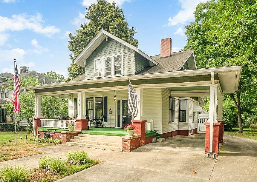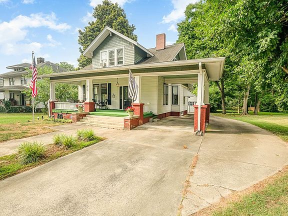 This charming bungalow style home sits in a highly desired downtown location. This is your opportunity to own a timeless historic home in downtown Burlington. Relax on the large southern style front porch. Historic touches include a downstairs bedroom with en-suite bathroom, formal dining room with original lighting to include wall sconces, glass doorknobs throughout, pocket doors from entryway into main living area, original hardwood flooring, period fireplace, and stunning trim work throughout the first floor that evokes a sense of tradition. Additional features include a downstairs office, three bedrooms on the second floor with a small bonus room ideal for a reading room or play area, storage garage to include built-in cabinets and large work area. The large backyard is perfect for outdoor entertaining. Don't miss out on this enchanting home.