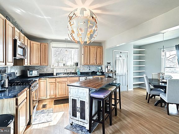 Welcome to this spacious three-story home, featuring 4 beds, 1.5 baths. The modern eat-in kitchen features useful built-in storage, stainless steel appliances and a moveable island. With a large, separate dining room (that could also be used as a home office) and a convenient first floor half bathroom, the first floor offers plenty of flexibility and also features a living room and relaxing sun-room at the front of the home – perfect for enjoying a morning cup of coffee. The second floor is home to three bedrooms and the full bathroom. The primary bedroom features a large walk-in closet, the second bedroom at the front of the house is flooded with natural light from multiple windows. The third bedroom also has a closet and is currently being used as a laundry room. Make your way to the third floor and you will not be disappointed! This 4th bedroom is a truly versatile space and could also serve as a family/rec room, movie room or exercise room! Outside you will find a patio area perfect for entertaining, along with a lawn area and raised planters for gardening enthusiasts! The detached garage offers you additional storage space if required.
