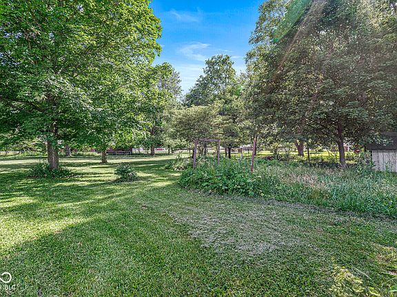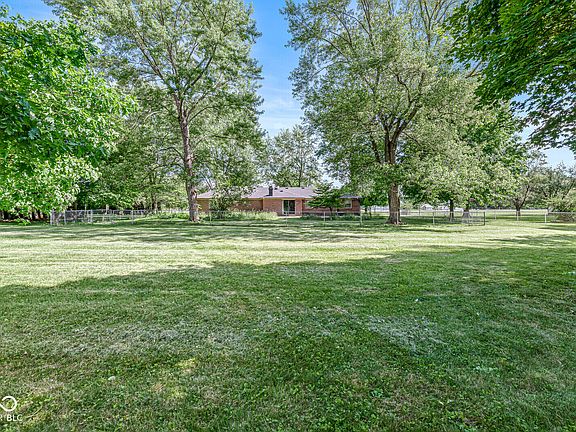 Charming 4 Bedroom and 2 Full Bath brick ranch home on an attractive 1.25 acre lot! Off of the Foyer Entry, a Formal Living Room greets you with huge bay window and new carpet. A cozy Family Room with new carpet/, wood beams, a brick wood burning fireplace and access to the patio. Spacious Kitchen with center island, pantry, new stove/oven, and breakfast room. Formal Dining Room with new carpet. The roomy Primary Bedroom boasts a walk-in-closet, new carpet, and an en-suite bathroom with a step-in shower. A Full Family Bath with bathtub. Three spare bedrooms all have new carpet. The large rear Patio opens to a garden and has fantastic views of the park like setting back yard. The back yard has a fully fenced area around the patio and gardens. Two car attached garage. Storage shed. Pendleton Schools, a great location to East Elementary or to the High School/Town! Appliances stay, including the washer and dryer. Seller to provide a 1 year home warranty!