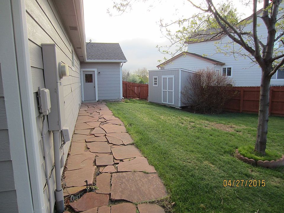 NICE RANCH HOME IN A CUL-DE-SAC TYPE LOCATION close to LONGS PEAK PARK and convenient to schools, shopping and everything you need. Spacious interior with vaulted ceilings, open floor plan and a huge back yard with newer storage shed. Open floor plan ready for your personal touch. Third bedroom could make a great in home office. Enjoy over a quarter of an acre of private park like yard or stroll down to the park. Finish the basement for additional living space.