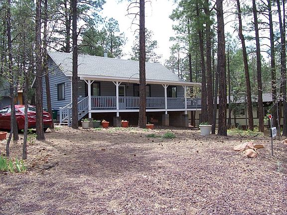Cabin in the trees and close to the hospital, restaurants and shopping. This log sided cabin was built in 2010. It is a 2 bedroom, 2 bath home with covered decks front and back to enjoy listening to the wind in the trees. Here is the cabin that you have been looking for. It has crown molding, wains coat, some custom blinds, 2 ceiling fans and power to the shed. Back yard is fenced for your pets. Wonderful home for summer get away or full time living.