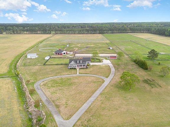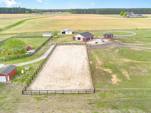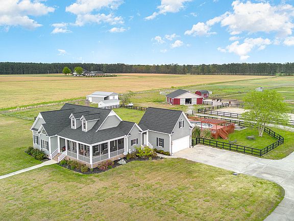 This gorgeous 10-acre property, centrally located between Clayton, Smithfield, Zebulon and Wilson. Welcome to southern living in this beautiful home with Hardie Board siding, a huge screened in porch. You're greeted to an open floor plan with soaring ceiling in great room, stone fireplace, real hardwood floors and breathtaking views from every window. You'll also find a lovely breezeway at the back of the house which connected to a 2 car garage and a huge guest/bonus room with its own HVAC unit. A large fenced backyard, above ground pool perfect for a horses, family farm, or homesteading. A custom built cinder-block barn 42' x 42', 4 stalls, 16' aisle, large tack room, wash stall and hay loft. Adjacent you'll find a quaint detached building with its own HVAC, perfect as a home office or private guest quarters. You have a ''chicken palace'' with air conditioning building and storage. A recent (Feb 2024) addition is a 24' x 35' fully enclosed shop featuring a concrete floor, 2 roll up doors, 2 walk-thru doors, with attached 12' x 35' overhang on each side. One overhang has a 12' x 15' concrete pad and roll up door. The property features 6+ acres of pasture with cross fencing and 2 loafing/run-in shelters (12'x25', 10'x10'), large round pen, regulation size dressage arena. There is a large open field to make hay, grow crops or fence. HVAC, Water Heater and Roof are less than 3 years. The property is less than 8 miles from I-95, 45 min to Downtown Raleigh, 50 min to RDU. Conveniently located to Horse complexes: Portofino Equestrian Center, James B Hunt Horse Complex and Bob Martin Eastern Ag center. Job transfer requires sale. Hard to find quality horse property with amenities like this house.