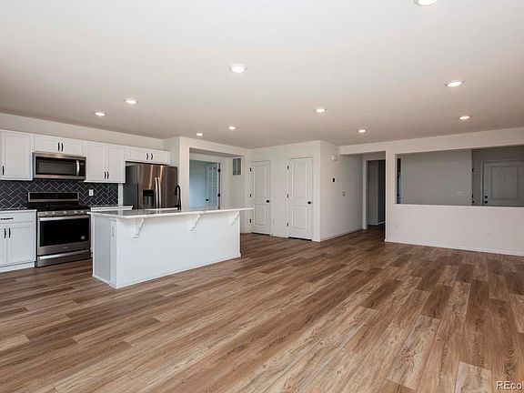 Brand new and ready for you to move in! Spacious RANCH style home with beautiful upgrades throughout! You’ll love the entertaining space in this home and the tasteful finishes including luxury vinyl plank flooring, stainless steel Whirlpool appliances, quartz counters and oversized kitchen island! You'll appreciate the privacy of the floorplan of this home with the second and third bedrooms in the front of the home and the primary suite in the rear. The primary suite boasts a large walk-in closet and private bathroom showcases a soaker tub, walk-in shower, dual-sinks and a separate water closet. Work from home? You’ll have a private office with lovely glass French doors to yourself! After hours relax on your covered back patio and enjoy the fully xeriscaped backyard designed for low water usage and low maintenance. Finishing touches in the home include Wi-Fi smart thermostat and the home is Energy Star Certified designed to save you money on utilities. The Lakes at Centerra Neighborhood offers community pool, clubhouse, parks, lakes, K-8 STEAM school, trails and is home to the High Plains Environmental Center! Team Lassen represents the seller/builder as a Transaction Broker.