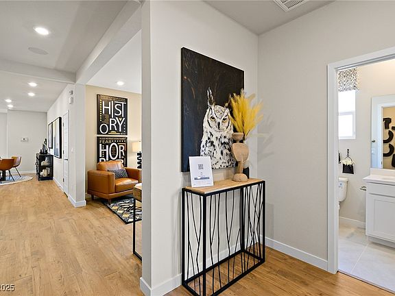 New Construction – September Completion - Built by America's Most Trusted Homebuilder! Welcome to the Hibiscus at 4160 E Brusca Way in Ovation at Mountain Falls, a premier 55+ active lifestyle community. Just an hour from Las Vegas, this desert oasis offers breathtaking mountain views, rolling green hills, and a lifestyle that’s second to none. The Hibiscus floor plan features thoughtfully designed living space with 2 bedrooms, 2 bathrooms, and a 2-bay garage. Perfectly blending comfort and privacy, the guest bedroom and versatile flex room are separated by a full bath—ideal for visitors or hobbies. Retreat to the spacious primary suite, complete with a walk-in closet and double vanity—your own personal sanctuary. Entertain effortlessly in the open-concept kitchen, dining, and gathering areas, or take the party outside to the covered outdoor living space.Additional highlights added include: 12' center meet sliding glass door. Photos are for representative purposes only.