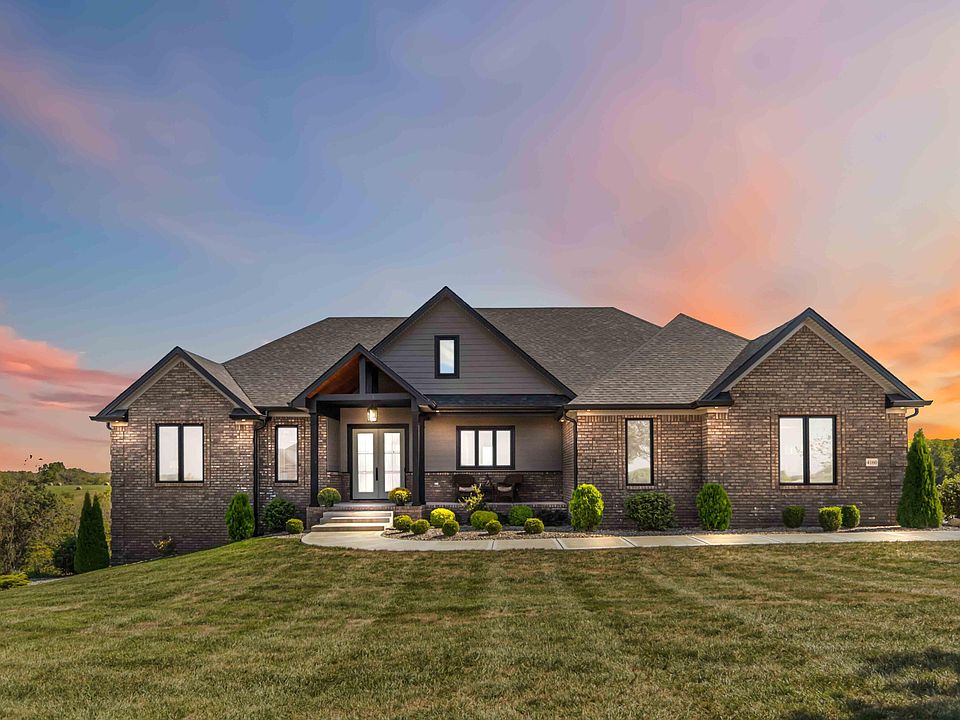 Contemporary meets luxury in this remarkable home located in the prestigious gated community of Lake Ridge Estates. Gorgeous 8' double front doors lead to the living area with a wall of windows and 8'x12' sliding glass doors with beautiful farm land views beyond. The open floor plan keeps family gatherings fun and inviting while highlighting a luxurious chef's kitchen. The kitchen displays a Wolf 48'' professional range, stainless steel/tile backsplash, large island and custom cabinetry. The butler's pantry includes an ice maker, sleek drawer style microwave, beverage center, additional cabinetry and ample shelving for food storage. The spacious great room flows seamlessly to a covered composite deck with vaulted celling creating the perfect indoor/outdoor entertainment area. The primary suite offers a spa-like setting with a tiled steam shower, heated tile floors, heated towel rack & smart bidet toilet. The vast primary closet connects to the laundry room with more custom cabinets. The basement features a rec room, home gym, full bath, guest bedroom/office etc. The additional storage area and basement utility garage are perfect for your lawn equipment and storage needs.