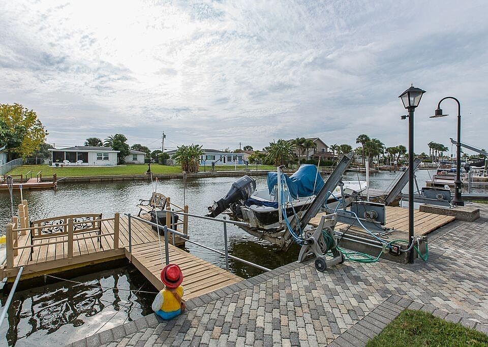 Come check out this AMAZING Gulf Harbors home! Peaceful water view! So many new upgrades that you won't have to do anything when you move in! Wait until you see the tropical paradise that awaits you in your back yard oasis! The New windows and Sliding glass doors allow the best view from the spacious living room. Brand New kitchen upgrade, and cabinet refinishing in the main bathroom. Concrete pavers have been meticulously installed in the driveway as well as the pool, front porch and the top of the sea wall area. Hurry and make this your own little piece of paradise! per seller all have been added: -NEW AC WAS INSTALLED 2015 -NEW FLAT ROOF 2018 -NEW WINDOWS 2018 -NEW PAVED WALKWAY WITH NEW FIRE PIT PAD 2018 -KITCHEN UPGRADE 2018 -NEW WASHER & DRYER 2017 -NEW CEILING FANS THROUGHOUT HOUSE 2017 -UPDATED ELECTRICAL PANEL AND EXTERIOR ELECTRICAL 2017 -ALREADY WIRED FOR 50 AMP ELECTRIC SERVICE & READY TO USE , GREAT FOR RV -FLOATING DOCK WITH JET SKI PORT & BOAT LIFT (WITH ELECTRIC AND WATER SERVICE) -KAYAK/SMALL FLATS BOAT LAUNCH RAMP -DEDICATED POOL HEATER NEW IN 2013 -ENTIRE HOUSE HAS A GE FILTER SYSTEM WITH R/O -FULL SPRINKLER SYSTEM (FRONT AND BACK OF HOUSE) -FULLY FENCED BACK YARD -COMMERCIAL CAPACITY AIR COMPRESSOR IN GARAGE STAYS WITH HOUSE -GUNITE POOL -TILE FLOORS THROUGHOUT, NEW IN BEDROOMS -EXTRA WIDE (2 CAR WIDTH) AND EXTRA LONG DRIVEWAY