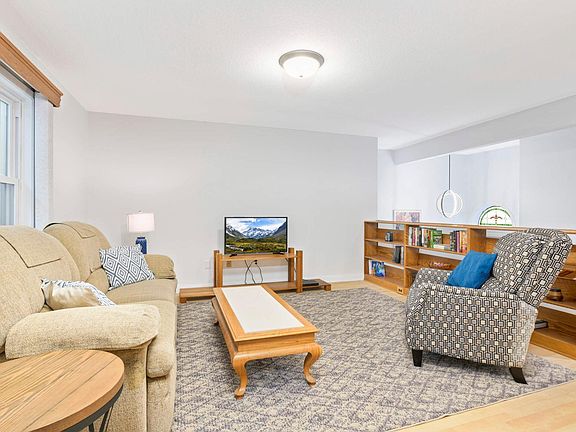 Awesome opportunity updated end unit townhome with two car garage. New updates include: Both bathrooms, new carpet and luxury vinyl plank flooring, kitchen appliances and backsplash. This unit has a large deck large open living areas on both levels. The main floor features vaulted ceilings with an open concept from the kitchen to the living room and out to the deck. A newly updated full bathroom and two bedrooms complete the main level. The lower level has a large family room, 3/4 bathroom and laundry. This level is a walk out to the back yard. A treed back lot line adds to the privacy. New concrete garage apron, new driveway, new sidewalk and entry steps. New entry door 2024, new deck 2018.