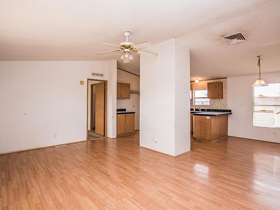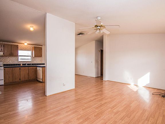 Great opportunity to own a double wide home with an open and spacious split floor-plan. Very functional 1152qft home has 3 bedrooms, 2 full bathrooms with fenced back yard. Pass through kitchen with abundant cabinet space with dining area and living room combo. Master bedroom has a walk-in closet and master bathroom has a garden tub/shower. Ceiling fans in most rooms and vaulted ceilings throughout. New wooden storage shed included as well. Home needs some work and is priced accordingly. New roof in September of 2016.