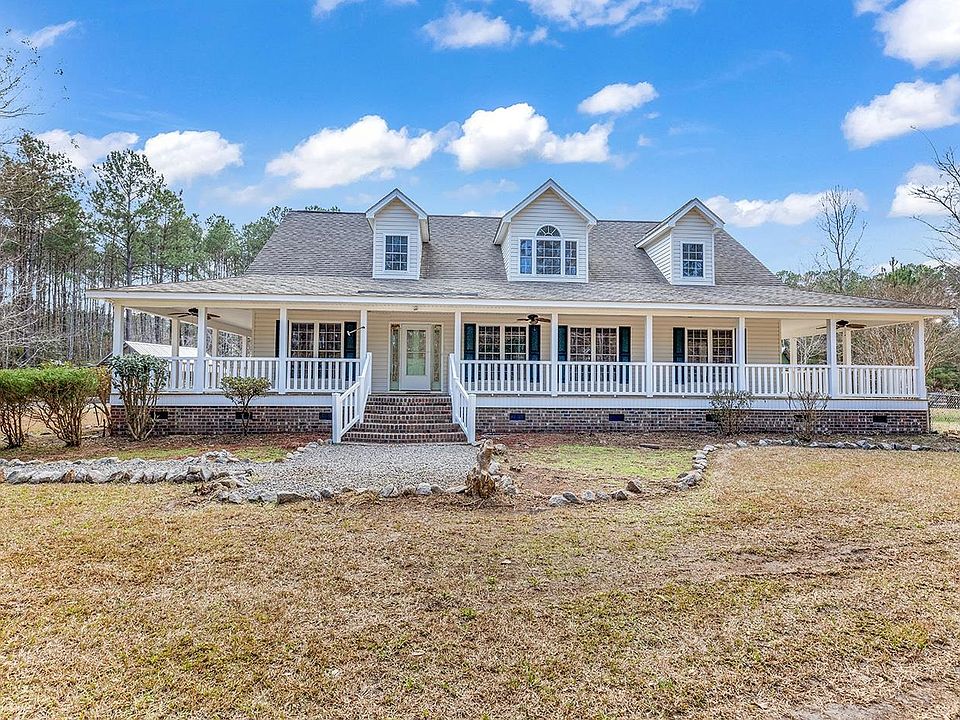 We are under contract This hidden gem on 5 acres is tucked away from all the hustle and bustle. The wrap around porch of this 3-bedroom screams country living. 18-ft vaulted ceiling in the 17x18 great room with a fireplace, large master en-suite, mud room side entrance and a separate laundry room, walk upstairs to the attic, a converted double car garage as a bonus room, screen porch and carport sum up the main house. There is a large metal Workshop building for at least 2 cars, a separate 1 car garage with another carport, a shed for storage and a garden shed in the back! All positioned on a pond complete with a fountain! You have to visit to get the full picture. With some updates this would be a true estate!