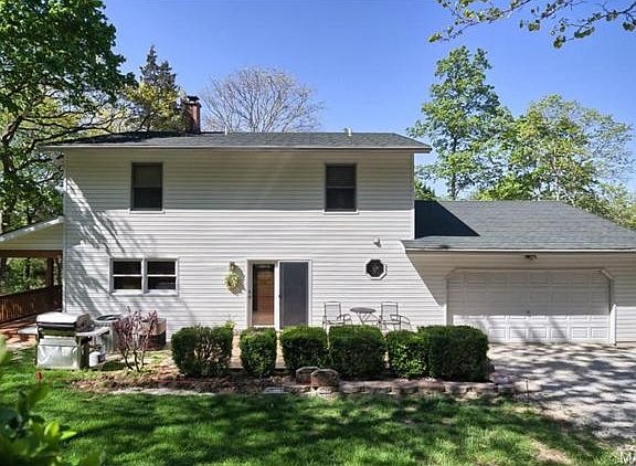 Lovely 2 story home nestled away in a beautiful peaceful and private setting on 5+ acres. There is an amazing wrap around deck that will delight you! What a great place to hang out and watch the wild life! This Custom built home has 6" exterior walls and Hurd windows. Zoned heating & cooling. Large wood-burning Clayton stove in the lower level adds to the energy efficiency of this home. The Kitchen and breakfast room have gleaming HW floors, granite counter tops, tile back splash, stainless appliances & a breakfast bar. MF laundry with wash sink. The Upper level has a spacious master suite with full bath and there are 2 additional bedrooms with walk-in closets & full bath. The home has a newer 50 yr roof. The walk-out lower level awaits your finishing touches. The property also has a lean to and shed on the property. Bring the horse's!
