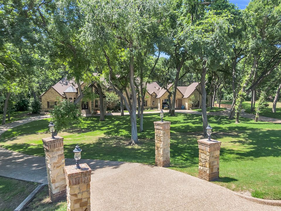 You must see this magnificent estate, heavily treed private acre + lot in Midlothian's most prestigious gated community. Elevated atop its lush surroundings, showcasing lagoon-style pool adorned with cascading waterfalls, ensconced by majestic oaks that impart a sense of serene seclusion! Step inside an interior of unrivaled elegance, where an open floor plan seamlessly intertwines formal entertaining spaces with a lg family room, floor to ceiling stone fireplace, Juliet balconies, hand scraped wood floors.Primary suite featuring walk-in shower, his and her closets, fireplace and private patio. A 5.5 -car garage, motor court, port a cachet and a complete expansive 1120SQFT apartment with a separate entrance. The kitchen is a gourmet chef's dream with granite counters, brick pavers, vikiking appliances, knotty alder cabinets, built in sub zero refrigerator, copper sinks and huge walk in pantry! This home has too many custom features to list.Please see feature sheet for more details!
