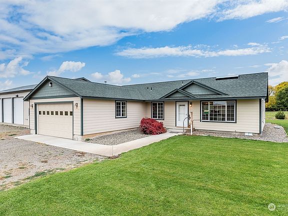 Now available, 1-story home w/ large shop on 52.4 acres of premium Kittitas Valley farmland, currently in alfalfa. Picture windows & skylights grace the spacious open floor plan. Primary suite feat. a full bath & walk-in closet. Attached studio space for crafting or other projects; the wind-sheltered courtyard is perfect for a BBQ. Plenty of storage space throughout. Att. 2-car garage w/ a breezeway to the 3,360 sq ft, 5-bay shop. Shop incl. automatic doors, workbench, office, & shelving. The acreage is serviced by Cascade Irrigation/gated pipe & feat. separate ag access on the NE corner of the lot. A rare opportunity to own a well-maintained home w/ a massive shop on a large parcel of pristine hay ground. Welcome home!