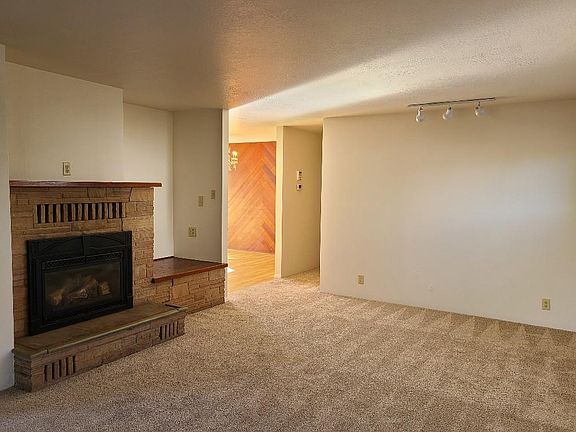 Freshly painted ,refinished hardwood floors, and new carpeting. Fully equipped kitchen with range and refrigerator, plus a separate dining area. There's a large landscaped south facing backyard with a big deck to relax in the sunshine. The floorplan is very functional with on bedroom and bath separate from the others. Attached garage and laundry room. Nice Kitchen and Dining area, Warm and dry with forced air heating and a gas fireplace in the living room, built in cabinets in one bedroom and a window seat in another!