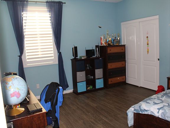 Lovely Pulte pool home in a desirable neighborhood. From the front door you can see the view of the mountains. As you walk it features hardwood flooring. This home has 5 large bedrooms and 4 bathrooms plus a loft. This home offers one bed and full bath downstairs.Just to name a few things the home has surround sound, crown molding and water softener, gas fireplace and solar panels(paid). Laundry room located upstairs, one bedroom has its private bathroom and the other to bedrooms have a jack and jill bathroom. Kitchen has stainless steel appliances with center island and walk in pantry. Backyard is over sized with large pool and covered gazebo with fruit trees (apricot,peach,almond,cherries,apple,more). This home show very well. Come see for yourself.