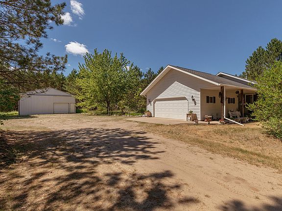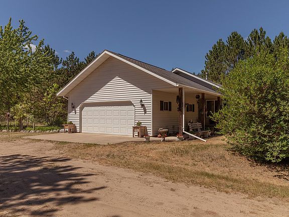 Gorgeous pine studded 4.49 acres with Rambler. Attached garage and 30x48 pole barn. Gas fireplace, 2 bedrooms, 1 bath, and over 1200 finished square feet with everything on one level. The TV and Wood TV stand are included. It was designed and custom made for that area in the living room. Private land with room for gardens. Just West of Jenkins, and Pequot school bus goes right by.