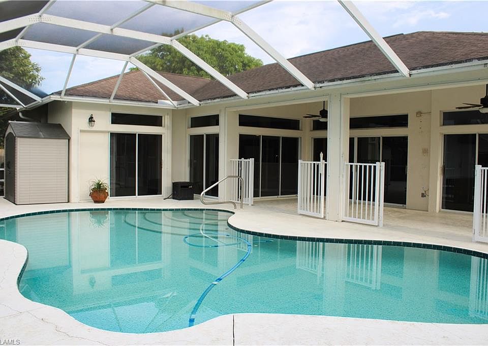 Brand New Roof with 20 Year transferrable warranty Just Installed! Wind and Hurricane Mitigated. Preferred Flood Zone where no flood insurance is required by banks. Owners have an inexpensive flood policy that is transferrable. Home is built like a fortress and has withstood both CAT 5 Storms Ian and Irma. Comes with a complete set of hurricane shutters. Large 16X30 handicap accessible pool with large screened in cage resurfaced 3 years ago. White aluminum Security safety fence in the lanai. Great school district that is walkable. Great neighborhood with minimal traffic as the area is not a through street. Over 2200 square feet under air with 5 bedrooms with walk in closets, large laundry room with space for an additional fridge, two full bathrooms. Cathedral ceilings, circular driveway, large 2 car garage and additional parking on both sides of the house. The lot is oversized with Large space for barbequing in the yard under the shade of the trees. Close to the beaches, world class golf, tennis and pickleball, top class restaurants and eateries. Coastland Center Mall is a short drive away and Marco Island is just 15 miles to the south. Naples has it all! Call Agent for Showing!