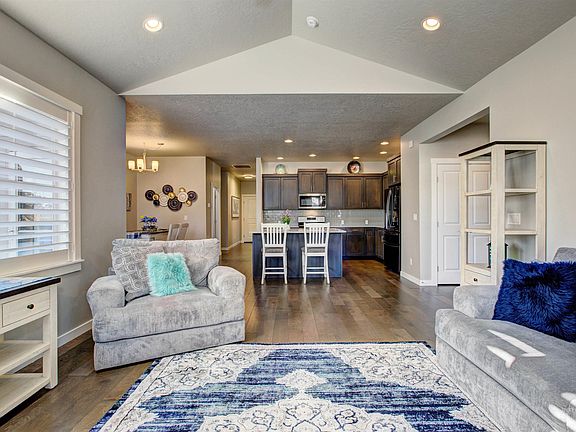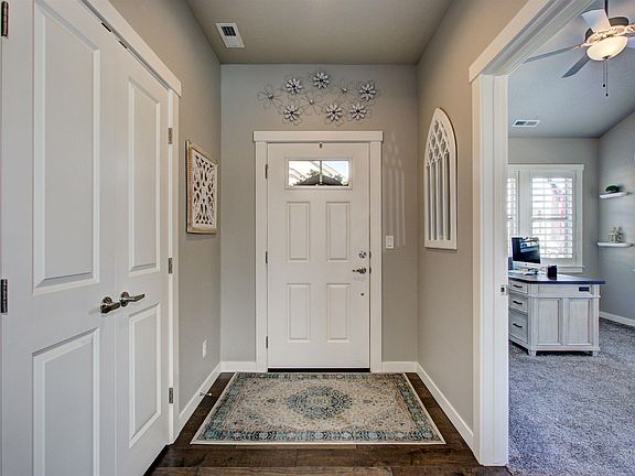 Welcome to your low maintenance lifestyle. This classy, better-than-new townhouse gets vast natural light throughout the day. This rare single level has 3 spacious bedrooms + office, open concept, gourmet kitchen, tile and quartz throughout the bathrooms and kitchen, and a covered patio that allows for outdoor living all year long. Owner has upgraded this 2year old home with real wood plantation shutters throughout, custom built in storage cabinets in garage, garage car mat, built-in garage-hidden safe, storm doors, and upgraded lighting. Luxury privately gated Movado Village has everything you want, and takes care of everything you don’t want to do. With open spaces, walking paths, community pool, 2600 sq ft community clubhouse which includes catering kitchen, large gathering room, zoom/office space & 24hour exercise facility, you have everything you need within reach. HOA covers lawn/shrub maintenance, snow removal, exterior paint & roof.