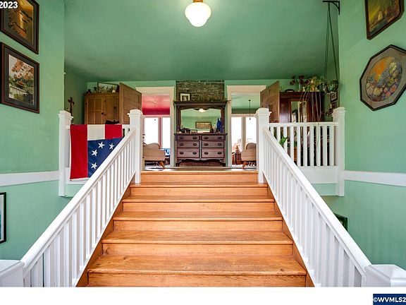 Welcome to the historic Eldridge School House in Gervais, Oregon - a timeless treasure brimming with character and possibilities. This expansive 4-bedroom residence, boasting a total of 4,906 square feet, transports you back to an era when craftsmanship and elegance prevailed.
