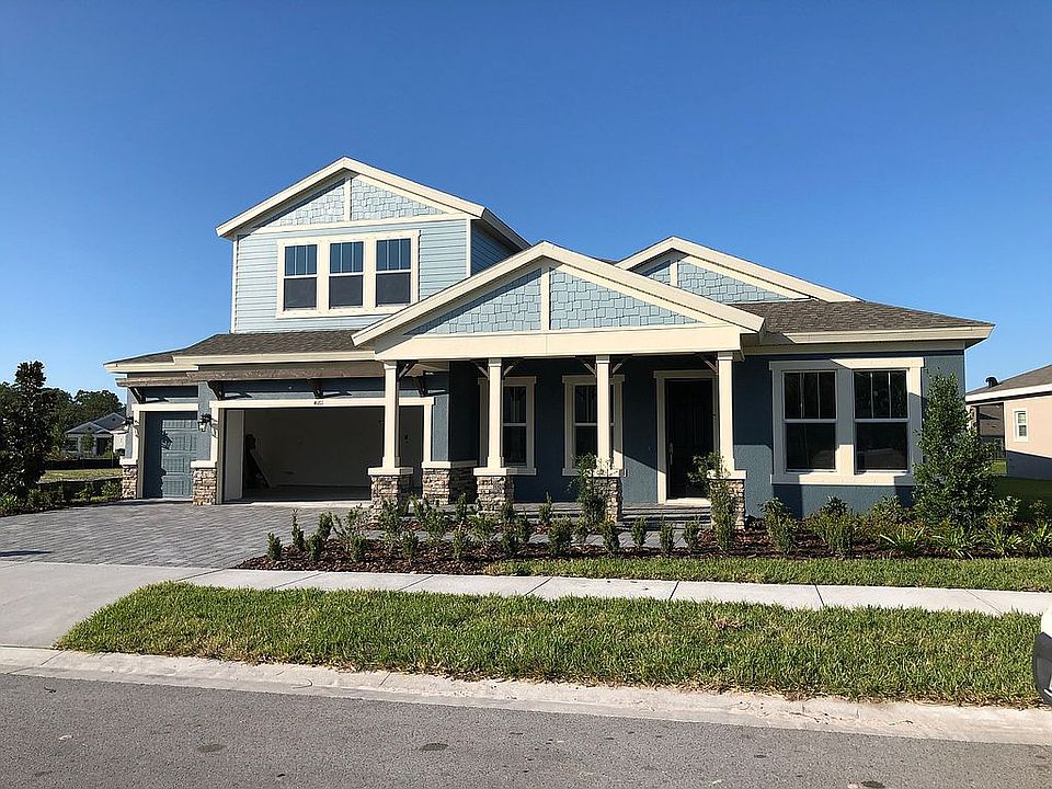 SUPERIOR EXECUTIVE HOME! Be Home for the Holidays! Introducing a Homes By WestBay Key Largo 2 situated on a 75 ft lot with heated pool & spa overlooking a dreamy POND VIEW located in coveted gated section of LONGLEAF, WOODLANDS. This distinguished and finely crafted floor plan offering 5/4/3 plus a bonus room, office & formal dining is built with fine craftsmanship and a traditional open floor plan featuring soaring 12 ft ceilings in all main living areas. You will appreciate unrivaled luxury & elegant upgrades throughout this home including custom Pottery Barn lighting, 8ft Cheyenne doors, Upgraded Waterproof Luxury Vinyl Plank floors in all main living areas, extra can lights and Plantation Shutters. The inviting Craftsman Exterior has exceptional curb appeal thanks to stone accents, columns, corbels, hardy board accent, landscaping & paver driveway. Stylish front door & front porch greet guests. To the right of the foyer is the office with ceiling fan and 2 large windows. To the left is the spacious formal dining room with accent chandelier. Arched foyer leads to the grand room. The spacious Grand Room features ceiling fan, speaker pre-wire, view of pond & pool & space for lg furniture configuration. The heart of the home, the gourmet chefs kitchen, is equipped with top of the line GE Caf & Profile appliances featuring Refrigerator, built in oven/microwave, 36 5 burner gas cooktop accented by a statement modern chrome hood. Classic, crisp white Shaker wood cabinets are fashioned with crown molding, under cabinet lighting, & black hardware. Pantry features custom built ins. Enlarged Custom Grey Island features quartz counters, decorative Pottery Barn pendent lights, space for 4 bar stools, farm sink and additional cabinets. Secluded, spacious owners retreat elicits feelings of comfort and rest. The Master Suite is a large room spanning the left side of the home, featuring many windows w/ a view of the pond. A unique dual entry his & hers walk in closet is sure to please. Escape to your luxurious, modern master ensuite w/ oversized walk-in shower + rain head, granite, dual sinks, black faucets, new vanity lighting, cabinets & drawers & spa-like garden tub. In this desirable split floor plan, you will find 2 well-sized bedrooms towards the front of home close to a guest bath with dual sinks and tub shower/combo. Towards the back of the home is an additional BR & another bath w/ walk in shower providing access door to pool. The wood spindle staircase leads to 2nd story featuring a full bath w/ walk in shower & 5th br. An impressive 2nd fl bonus room offers ample space for entertaining. Laundry room features farm sink & cabinets. Resort style pool area is an escape from it all. Float or lounge in the heated saltwater pool & spa or relax in the sun on the cool Silver Travertine deck overlooking the tranquil pond. A private, covered patio with shady spaces offers room for table and chairs. Lanai is prewired for TV. Spacious FENCED yard offers room to play catch, garden or run with the family pup! There is nothing to do but move in! * Tankless hot water heater * Washer & Dryer *Epoxy garage floor* Water softener* Fresh landscaping* Gutters * Hurricane Shutter * 50amp EV charger. Award winning Longleaf offers Elementary School, community pool, playground, baseball field, basketball & volleyball court, Town Hall & ongoing events. Close to Starkey Market, Downtown Longleaf, Publix, Restaurants, Tampa Airport & Beaches. By Appointment only.