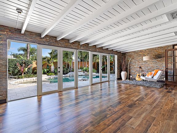 Prepare to be impressed! Meticulously remodeled and refined. Bright and open floor plan with spacious rooms. Many unique upgrades include stacked stone walls, custom wood walls, crown molding, bar, and custom built-ins. The backyard is a tropical paradise. Newer pool with boulder border and sundeck, covered patio with tongue and groove wood ceiling, and mature palm trees. The kitchen features white cabinets with rich granite counters and stainless steel appliances. The master bedroom and remodeled bath are open and spacious with his and her furniture vanities and closets. Newer cement tile roof 2016, pool new 2103, both a/c's less than 6 years old, exterior storage and parking on the side for a boat or RV. All the work has been done! Move in and make it your home!