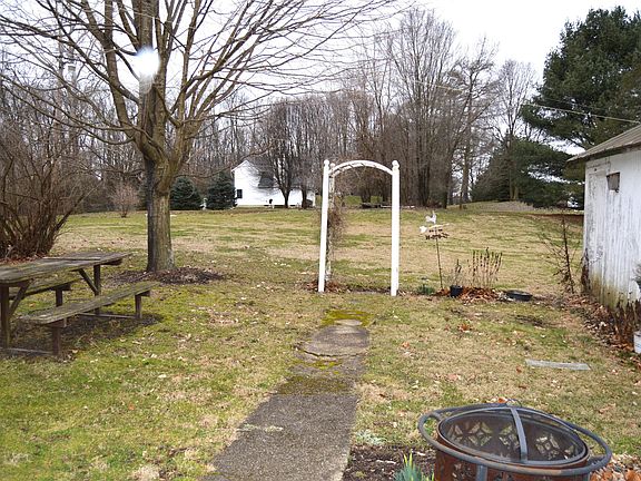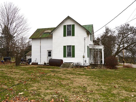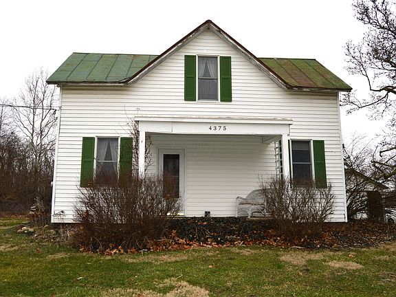 **Property needs work and is priced accordingly; just appraised at $160k** 3BR farmhouse in Bloom twp! Eat in kitchen with electric range and wood floors. Two living spaces, one highlighted with decorative fireplace. Bedrooms are all on second floor along with reading/craft nook area. Current owner started a full bath on second floor but didn't finish it. Cellar with exterior access only. Three season room and 1 car detached garage. Hand dug 25' well. Lot's of potential here for the right buyer! Beautiful setting. Sits across the street from Pine Hills Golf Course. GPS and auditor show 4161 as address but house numbers say 4375. It's the same property.
