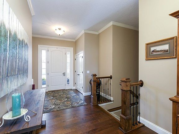 This home shows pride of ownership as early as pulling into the driveway. Standing under the covered porch you enter the home and immediately notice the gorgeous wood flooring and oversized white painted trim. The great room features a tiled fireplace and vaulted ceilings. Looking into the kitchen you will notice stunning white cabinets with crown molding, a stone backsplash, granite, and a huge walk-in pantry. The breakfast bar in the center island and the stainless appliances finishes off the kitchen. The dining area has a tray ceiling and sliders to the large deck and fenced in backyard. The master suite is set off by the lighted tray ceiling and features a Jacuzzi tub, oversized tiled shower and a large closet. The basement is highlighted by the wet bar, 2 bedrooms, full bath and daylight windows.