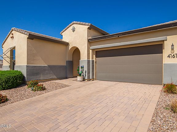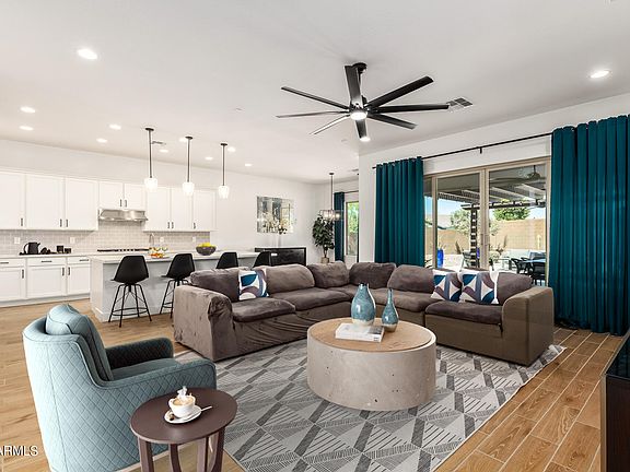 Discover this captivating home in the desirable Eastmark! Nestled on a large corner lot, it displays a well-manicured landscape & a 3-car tandem garage w/ paver driveway. Fabulous interior features designer paint, modern light fixtures, & wood-look tile flooring w/ carpet in bedrooms. You'll love the inviting great room paired with 4-panel sliding doors to the back! The impressive kitchen offers high-end SS appliances, white shaker cabinetry, subway tile backsplash, pantry, quartz counters & an island w/breakfast bar. Den for an office! Main bedroom has a barn door that opens to the ensuite w/ dual sinks & a walk-in closet. Two other bedrooms share a Jack & Jill bathroom. Enjoy the spacious backyard with artificial turf, built-in BBQ, & a covered patio w/ pergola extension! Welcome home!