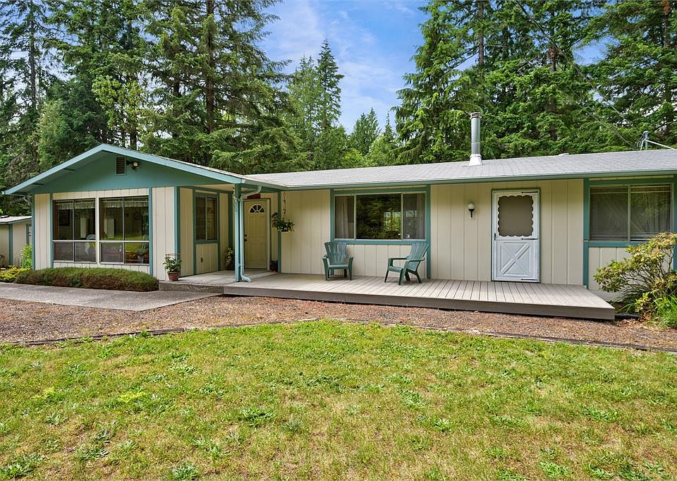 Great slice of Seabeck here -- one level living on shy 5 acres. Updated home with covered front and back decks, bright family room with propane stove, living room with wood stove, laundry room w/room for freezer & extra shelving, kitchen has granite counter tops, two eating areas. Partial unfinished basement with exterior access is ready for you to finish to your needs. Detached garage has a wood stove and concrete floors w/covered areas for boat/rv/other toys. Lots of sunny areas for gardening