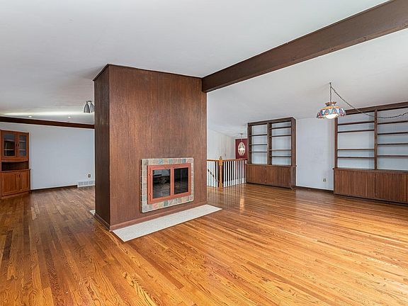This mid-century modern home with 4 beds and 2.5 baths is situated on large 0.37 acre lot with mature trees and is ideally located near Upper Arlington schools and parks. Grand entry with trapezoid transom window. Upstairs features 24' wide family/living rooms with cathedral ceilings accentuated by exposed timbers, hardwood flooring, floor-to-ceiling Pella windows and built-in bookcases centered around 2-sided fireplace. Recently updated eat-in kitchen with white cabinetry, tile backsplash and granite counters includes island with bar seating and walk-in pantry. Downstairs offers oversized primary suite plus 3 add'l bedrooms, full bath and laundry. Separate studio could be office or play space. Retreat to multi-level deck and paver patio overlooking park-like backyard. 2-car garage. *A2A