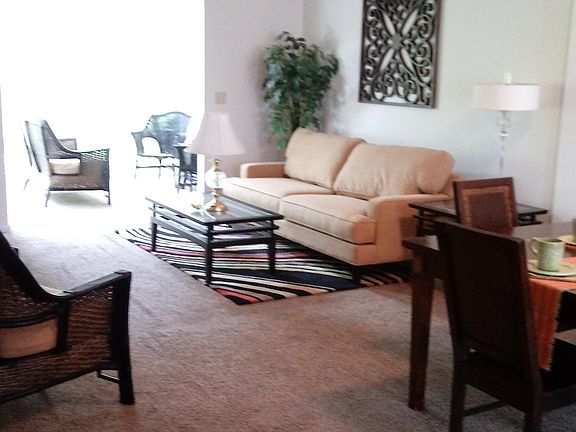 This FURNISHED 3 bedroom townhouse is ready to welcome you in the spacious living and dining area. The interior sun room features sky lights, chairs and love seat, and a second dining table eating area. Gas burning fireplace in living room. One car garage. Two of three bedrooms have beds and bedding ready to provide you with a good night's sleep. Adequately furnished for comfort, there is still room to add your personality to this stylish home. PETS ALLOWED! Call, text, or email to schedule a visit.