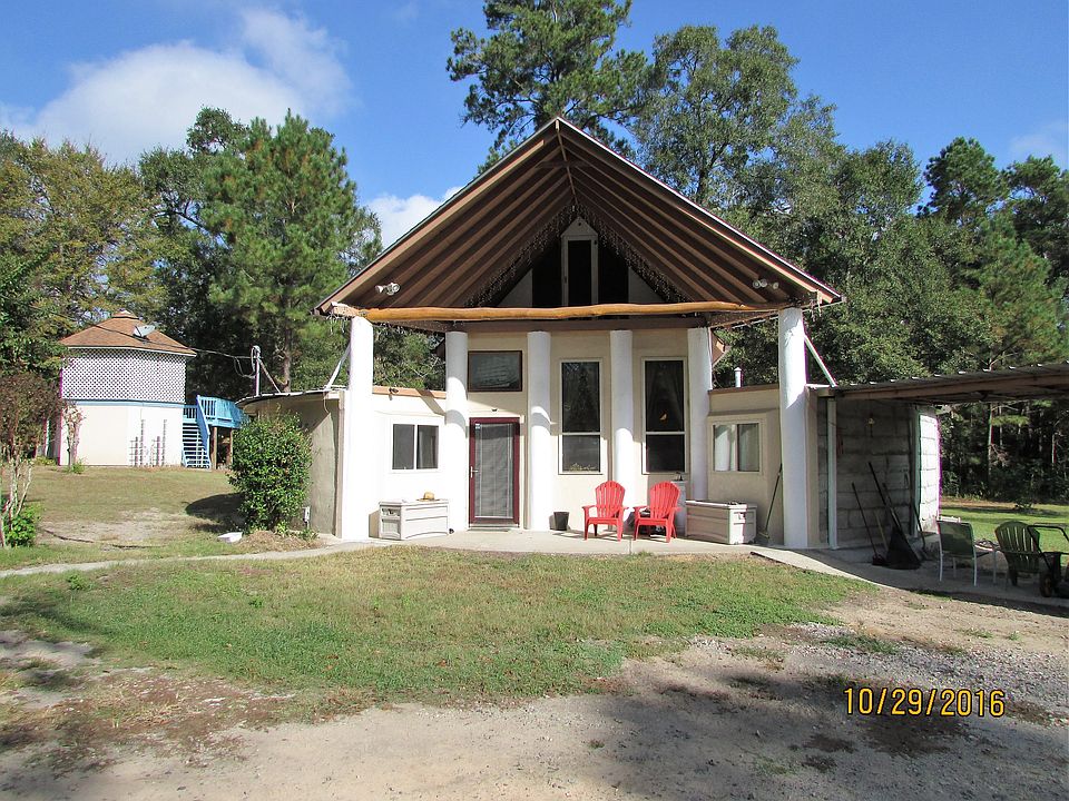 Unique style home with 4 bedrooms and 2 baths. Come to experience a different atmosphere while relaxing on a rooftop patio. fire resistant home. Refrigerator, washer, and dryer each about 1 1/2 year old, and freezer and riding lawn mower, push lawn mower and microwave go with the house. Hoses, wheelbarrow, creek water pump and tools will also go with the house. The home is being ''Sold As''.