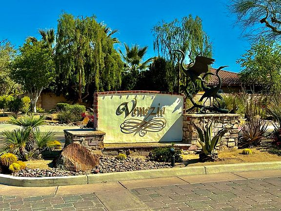 Price Reduced - Motivated Sellers! All offers at $900,000 or above will be considered. Grand home with views in highly sought after Venezia for under 1 million. VALUE.41615 Via Aregio is an elegant Tuscan style home in the desirable gated community of Venezia. 4 Bedrooms and 3.5 Baths. Courtyard entry complete with fireplace and fountain. Natural travertine floors. New carpet in the bedrooms. High ceilings with new LED lighting. Wooden shutters on all windows. Gourmet kitchen with granite countertops and large island. Fireplace and wet bar in the great room. Separate living room and formal dining room. Grand primary bedroom with that opens up to the pool area. One of the guest bedrooms has it's own entrance to the courtyard. Covered back patio with fireplace. Spectacular mountain views (!) from the great room, kitchen and primary bedroom. Pebble tec pool and spa with waterfall. Fruit trees. Desert landscaping. 3 car garage. Freshly painted interior and exterior. Low HOA Fees of $160/month. Great central location in Palm Desert close to shopping on El Paseo, world class golf at Desert Willow (reduced fees for PD residents), great schools and entertainment. Please note - The property backs to Portola Ave, so there is some road noise in the backyard......but also beautiful views.