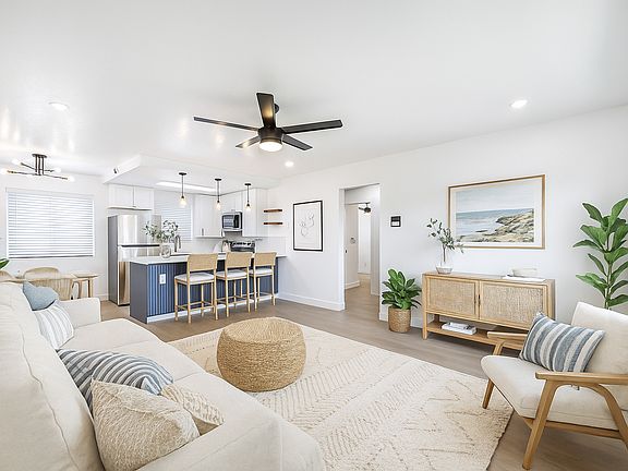 Experience elevated living in this fully remodeled 2-bedroom, 2-bath apartment featuring brand-new electrical, plumbing, dual-pane windows, and mini-split A/C units. The open layout showcases luxury vinyl plank flooring, recessed LED lighting, and energy-efficient stainless steel appliances. Both bathrooms feature custom tile showers and modern fixtures, while each bedroom includes spacious mirrored closets. Enjoy assigned parking, free on-site laundry, and keyless digital entry for added convenience.