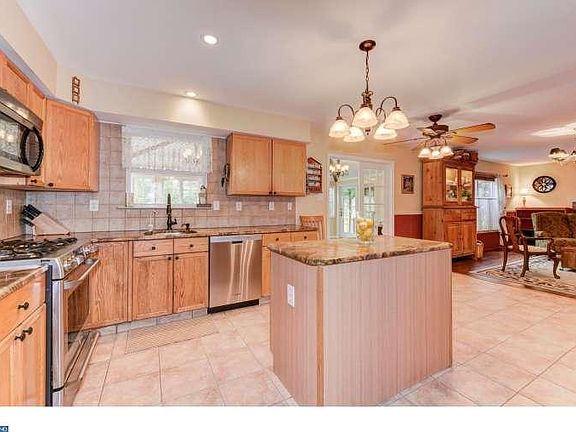 Take a deep breath and relax. Manicured lawns, lovely landscaping, sidewalks for strolling. a wonderful play park at the end of the wide streets? just the drive up to this beautiful 4BR, 2.5 bath home is enough to soothe the stress of moving! Entering the foyer with easy maintenance ceramic tiled flooring the living room is to your right behind pretty beveled paned glass French doors. Complete with crown and chair rail molding this is a bright and airy room in a sunny and bright home. Need a second office? (There is one in the finished basement) This room would serve that purpose well. Formal dining room is to your left and straight through to the beautifully appointed kitchen and breakfast area. The kitchen features: center island, granite countertops, stainless steel appliances including a commercial style 4 burner gas range with center griddle and a warming drawer, stainless under counter sink with detachable spray faucet, under counter soap dispenser, reverse osmosis water filter and garbage disposal, tile backsplash and pantry. A mud/laundry room is just past the entrance to the two car garage with powder room, large laundry room with closets and storage space and back door to the fenced yard. The garage features pull down step access to storage above. The first floor is completed by the sun room with vaulted ceiling, walls of windows, beautiful tiled floor and sliders to the absolutely gorgeous arbor covered with wisteria vine and strung through with sweet twinkle lights. This cool naturally shady spot is the perfect place for the built in barbeque and looks out over the lush fenced in lawns and landscaping. The finished basement is another place to unwind. Belly up to the long bar to watch the game or hang out at the table and enjoy the gas fireplace or put your feet up on the sofa and watch a movie. A separate basement level office would make a wonderful guest room or possible fifth bedroom. At the end of your relaxing day its up to the second floor and the master suite with vaulted ceiling, walk in closet and beautifully appointed master bath with double sink. Three spacious bedrooms share the hall bath. Terrific location midway with quick access to major routes and a fifteen minute drive to the train station makes this home a great choice for the commuter. New Roof installed 2014. Blue Ribbon Central Bucks schools!