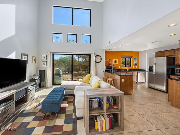 Wowza! The largest AND the nicest lot in this fabulous subdivision close to everything to include The Loop, Trader Joe's, St. Philips Plaza, farmer's markets, Sprouts, etc. This lovely 3 bedroom, 3 bath home has huge clerestory windows & tons of gorgeous natural light flowing in...not to mention the amazing views! The Great Room is open & airy with fabulous updated kitchen & tons of storage. The downstairs primary suite has a spacious walk in closet. Gorgeous easy care ceramic tile, too! Upstairs there are two additional bedrooms, bathroom & two separate loft/crannies to steal away & work/play. The views from both bedrooms are lovely. Newer HVAC system. The back yard is perfect for pool, raised bed gardens or perfect just as it is with easy desert plantings. On a bus route to UA/downtown.