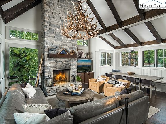 Classic meets modern in this stunning mountain home. Sophisticated and light-filled, 4162 Reynolds Parkway has the perfect blend of custom, convenience, and sanctuary. The soothing neutral palette maintains the focus on the panoramic views of the Blue Ridge Mountains that surround this home. Luxury abounds—from the designer lighting throughout to the custom finishes in every space. Enjoy indoor-outdoor living with two large covered porches— both featuring an outdoor wood-burning fireplace, enjoy a soak in the hot tub to rejuvenate after a long day of enjoying the premier amenities of Blue Ridge Mountain Club and even stargaze by the tucked fire garden just off from the fenced in back yard. The impeccable kitchen beckons you with chef-inspired touches and a beautiful, oversized dining space meant to comfortably seat your guests. From the majestic walls of windows that envelope you to the premier natural materials, 4162 Reynolds Parkway delivers a luxury lifestyle just steps from a world of adventure. Offered mostly furnished, this home is ready for you to come home to Blue Ridge Mountain Club, a premier mountain community, where a life well-lived is yours.