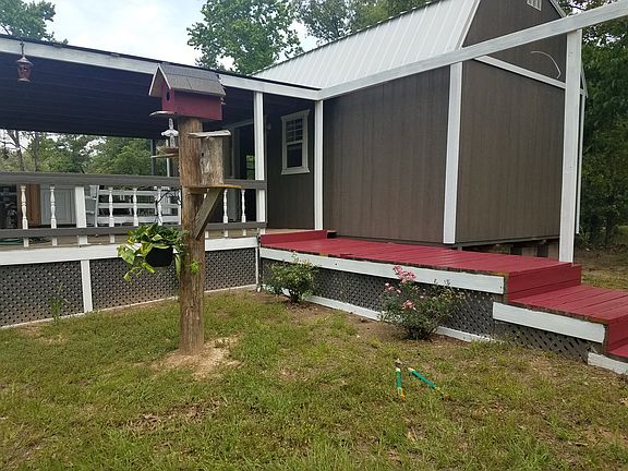 Cozy cabin on 22 acres in Harmony ISD. Land has stocked pond, creak running through it, 2 water meters, 400 AMP electrical service, multiple home building sites, pasture and hardwoods, and mulched trails. Beautiful site! Cabin is 12x32 with 2 lofts. Front porch is approx 20x20.