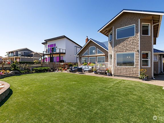 This truly is one of Whatcom County's most majestic waterfront properties. On clear days Mt. Baker pops in the background and the blue and turquoise waves lap so peacefully. Sellers have made this home so comfy + the upgrades with a new roof, power retractable awning, a gorgeous kitchen remodel with high end appliances; paid sewer assessment, upgraded bathrooms, this home is turn key ready! The fenced backyard features and expansive firepit area, a greenhouse, turf yard, patio that's wired for a hot tub, a shored up berm for higher tides, beautiful landscaping with seasonal plants and shrubs that bloom year round. You can launch a kayak, canoe or SUP just by walking out your back door. Seller will rent out for $4600/month.