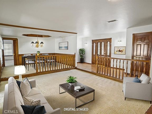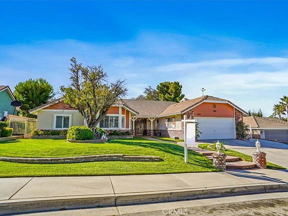 Amazing opportunity to own this stunning custom single-story home nestled in a peaceful cul-de-sac! From the moment you arrive, you’ll notice the pride of ownership showcased by the meticulously landscaped yard. As you step inside, you are welcomed by elegant double glass inset doors and beautiful wood flooring. The step-down living room features a charming brick fireplace, custom woodwork, and crown molding, creating a cozy and sophisticated space. Adjacent is the formal dining room, perfect for hosting dinners, with more exquisite wood detailing. The expansive primary bedroom boasts a large walk-in closet and a luxurious en-suite bathroom with a jetted spa tub, separate shower, and double sinks for convenience. The spacious family room offers vaulted ceilings with custom wood beams and a gas fireplace, adding to the warmth and character of the home. The kitchen, located just off the family room, is a chef’s delight with ample storage, a built-in gas range, double electric ovens, microwave, trash compactor, and a central island, ideal for preparing meals. One of the unique features of this property is the enclosed patio, offering additional space for relaxation or entertainment (unpermitted). Step outside to the fully landscaped backyard, where you'll find a block retaining wall, extensive concrete work, and a detached covered patio complete with a bar and built-in BBQ. Behind the patio, there’s built-in storage and a storage shed. Plus, there’s ample side yard space for a small camper or boat. This home is truly a gem!