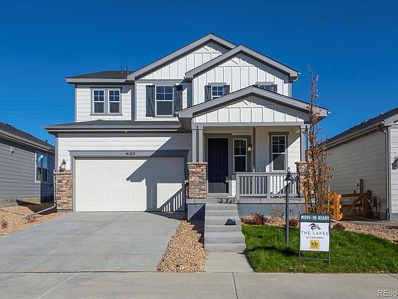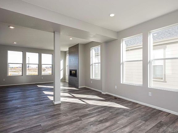 This stunning, two-story home features a generous first floor with great open space for a large family. You'll appreciate the 9-ft. ceilings on the first floor, the modern fireplace in the spacious great room and bonus space which is perfect for a formal dining room or music room. The stylish kitchen boasts Timberlake® 42-in. upper cabinets, Whirlpool® stainless steel appliances, a large walk-in pantry oversized island and plenty of space for a large dining table. Upstairs, a loft provides extra space for a media or game area and laundry room offers convenience. The primary suite showcases a walk-in closet and connecting bath with a dual-sink vanity, walk-in shower and soaker tub. This home also features a covered front and back porch to enjoy and entertain. Additional features include Sherwin-Williams® low-VOC interior paint and smart thermostat. The Lakes at Centerra Neighborhood offer community pool, clubhouse, parks, lakes, K-8 STEAM school, trails and is home to the High Plains Environmental Center! Ready for immediate move in. The Listing Team represents builder/seller as a Transaction Broker.