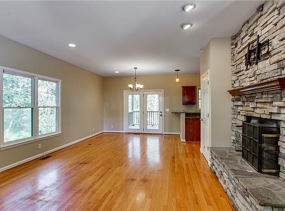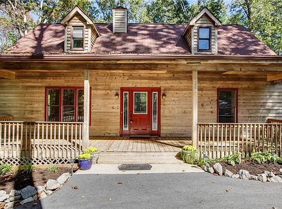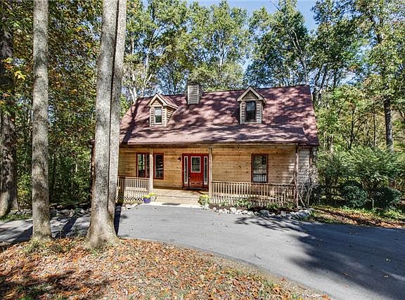 Charming Cedar Siding Home Nestled on 5 Beautiful Wooded Acres! Hardwood Floors, Granite, Stainless, New Carpet, Freshly Painted, Stacked Stone Fireplace, Basement, 2 Car Garage, Covered Porches on the Front & Back, Wildlife Galore, Creek, Privacy!