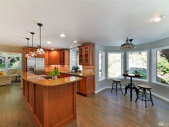 This authentic very well maintained English Tudor residence has privacy, gorgeous views of the Burrows Bay, Olympic Mountains, San Juans & dramatic sunsets. Formal areas include living room, dining room, parlor, & circular foyer w/majestic curved staircase. Casual areas: kitchen w/large eating nook, great room & large bonus room. 2 fireplaces-one w/mantel brought from England, turret w/window, leaded glass windows, new flooring 2018, oversized heated 3 car garage, & native low care landscaping.
