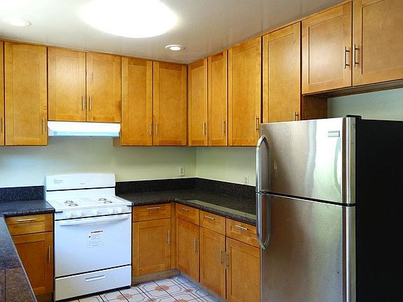 The large kitchen comes equipped with a stove and refrigerator, making meal prep easy. The property also includes a shared yard and plenty of street parking.