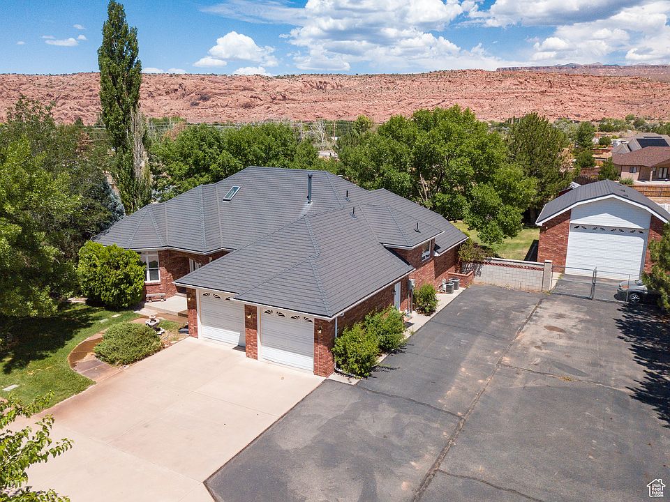 Beneath a canopy of mature trees, this well-maintained 4 bedroom, 2.5 bathroom residence spans over 4,000 square feet and is situated on a secluded one-acre estate beautifully landscaped with a circular driveway and views of the La Sal Mountains and Moab Rim. The main level offers a formal living room with a gas fireplace, a formal dining room, and a chef's kitchen. The entire upper floor (sq ft unknown) is a master suite, featuring a jetted tub, a separate shower, a generous walk-in closet, and spectacular views of the backyard. The first basement level has three additional bedrooms, a complete bathroom, and laundry, and the second basement level (unknown sq ft) has a spacious recreational room, is prepped for a wet bar, and is heated by a cozy wood-burning stove. The backyard has a garden, a fire pit, a basketball court, a tool shed perfect for storage, and a hot tub-ready patio. This is all complemented by a 28' x 34' detached shop plumbed for a bathroom as well as gas and includes a 240 bolt outlet. The property also includes paved parking and five acre-feet of Ken's Lake Irrigation Shares. Square footage figures are provided as a courtesy estimate only and were obtained from tax roll. Buyer is advised to obtain an independent measurement.